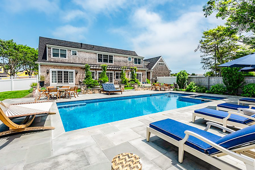 Located just on the outskirts of the Edgartown Village area and just a few miles from the South and State beaches is this charming home with accompanying guest suite. This is another vacation home that's perfect for hosting delightful outdoor BBQs with family and friends. The spacious backyard and pool area provides great space for fun and games. There's also plenty of outdoor furniture, including patio tables and chairs for enjoying meals at home in the golden light of a Martha's Vineyard sunset. Plus, when the sun goes down, you can keep the good times rolling gathered around the backyard fire pit. All that exterior goodness, and the interior brings everything you could need on your vacation, including a sunroom, a chef's kitchen, and a spacious main living room.