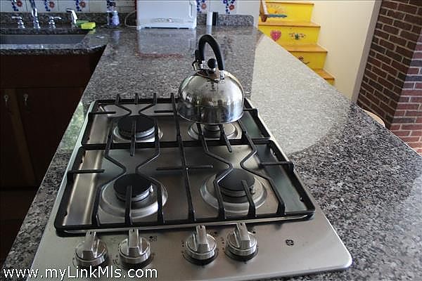 Enter Main house from the covered porch -matching custom arch doors lead you to either the mudroom/laundry room-kitchen entry, or the living room. The kitchen has Mexican tiled floor & granite counters with stainless steel appliances & gas 4 burner cooktop. & Double wall oven. Eat in Kitchen dining area with lots of natural light and 2 glass sliders to the deck and patio. The pantry hallway leads to living room (off hallway) is a full bathroom with glass block tiled shower. Open Livingroom with cathedral ceiling and wide pine floors. Slider leads to covered porch and back deck. Versatile floor plan with many options for accommodating multi-generational living, au pair suite bedroom with loft, home office or privacy for guests with their own entrance. Another large bedroom is located just off the living room. The back of the house is wrapped with a 30x20 deck, with distant water views of Vineyard Sound & Tarpolin Cove on Naushon.
