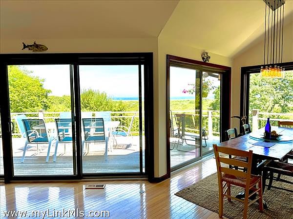 Panoramic Ocean Views to be enjoyed from each level of this custom, high quality built 4 BR home designed for easy Summer enjoyment or 4 Season living. The first level is a large open space to create a family room, or use the existing home gym/spa with state of the art equipment included. Very energy efficient, completely private, easy access to beaches, biking hiking, plenty of outdoor space that has huge potential since the home takes up only 1/3d of the property. Nestled into a hillside where bird life abounds, yet only a mile to dining at the Outermost Inn, Lighthouse and cliffs.