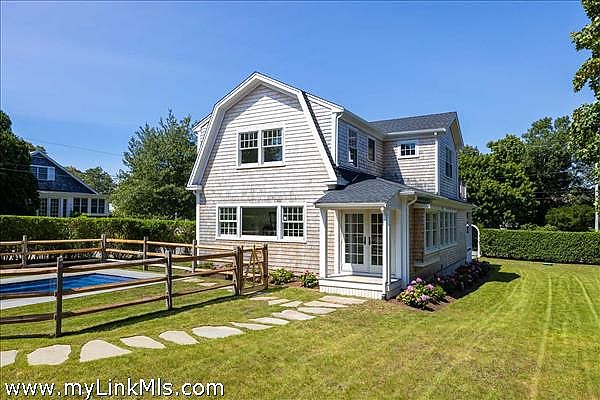 This beautifully renovated gambrel-style home in Vineyard Haven seamlessly blends classic charm with modern luxury. This pristine residence is nestled within a private, hedge-lined yard in one of Vineyard Haven’s most quiet and quaint neighborhoods. With the new heated salt-water pool, outdoor shower, lovely plantings, and beautiful gardens, no detail has been overlooked. The property also features a renovated garage with an unfinished second level, perfect for a creative studio. Inside, the home exudes warmth and elegance, with wide pine flooring, custom craftsmanship, and intricate wood detailing on the ceilings. The spacious living room, centered around a gas fireplace, is both inviting and stylish. The sunlit kitchen, equipped with top-of-the-line appliances and refined finishes, includes a cozy window seat that adds to its charm. The primary bedroom suite offers a serene retreat, complete with a private tile bath and access to a 2nd-floor deck. The three additional bedrooms are equally comfortable and well-appointed, providing ample space for guests. The finished lower level expands your living space further, ideal for a home theater, gym, or playroom. Spend your days soaking in this privacy that this tranquil abode provides, or take advantage of its ideal location to access the hustle and bustle of downtown Vineyard Haven where you can enjoy various galleries, shops, and fine dining. This location is also convenient to Owen Park Beach, West Chop and Mink Meadows Golf Club.
