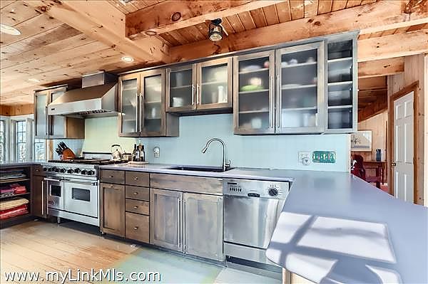 This thoughtfully designed post and beam home blends craftsmanship with character, featuring artistic touches throughout that make it truly one-of-a-kind. The kitchen flows beautifully between the main living areas and an inviting dining space surrounded by windows offering access to one of several outdoor decks for effortless indoor-outdoor living. On the first floor, the primary suite includes a private sitting room with built-in shelving, a cozy fireplace, and direct access to a secluded outdoor shower-a true island luxury. A first-floor half bath/laundry with a door to an additional outdoor shower is perfect for guests. Upstairs, a generous flex space provides multiple options—it could serve as an office, recreation room, or be reconfigured as an additional bedroom. The level also includes two existing bedrooms and two full bathrooms. A two-car garage with finished space above offers further versatility and potential for expansion, detached bedroom or convert to an ADU. With an existing five-bedroom septic system, this property is well-positioned for future growth, whether you're considering guest accommodations or more living space.