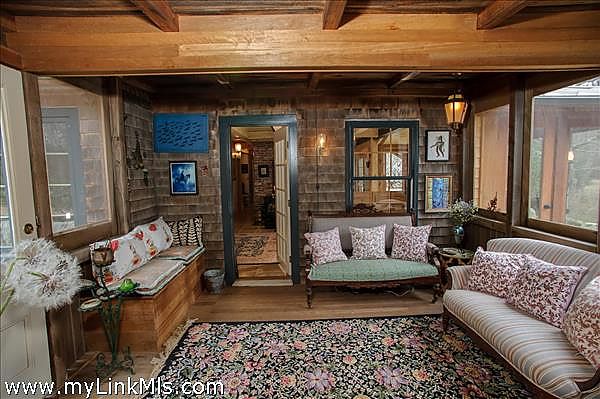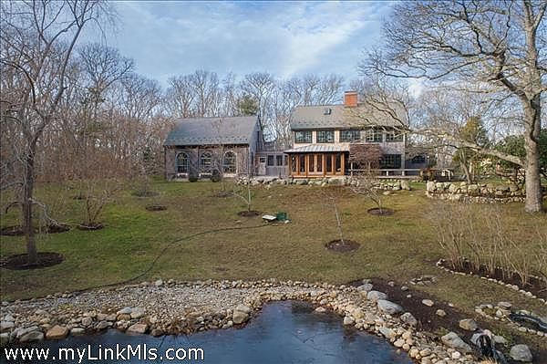 You will find this outstanding property at the end of a quiet country lane in West Tisbury nestled alongside hundreds of acres of conservation land and walking trails that extend all the way to Lamberts Cove Road. The setting is magical - 4 acres of rolling lawns with specimen trees and ponds. There are multiple structures to allow you to customize this compound to your personal needs. The main house was recently renovated by a top local contractor and the result is a rustic Vineyard vibe with a sophisticated twist. The cozy and comfortable kitchen and sitting room areas lead to the dramatic Great Room on the north end of the house - the 600 square foot space with its 26’-high ceilings is bathed in light thanks to the banks of windows and French doors. There are two bedroom suites upstairs with views of the main pond, one of them with a sundeck. The third floor loft area has also been used as a bedroom and is the perfect spot to accommodate younger members of the family and their friends. The detached two-story guest quarters continue the Vineyard country chic theme with a delightful bedroom with veranda overlooking a separate area of the property from the main house. In addition to the main house and detached guest bedroom, there is a barn with a large finished room and loft as well as a secluded writing studio. A new garage completes the compound. Note: Four-bedroom septic in place. Property currently has 3 bedrooms plus 1 loft sleeping space. One more legal bedroom may be added. *New in season imagery coming in June.