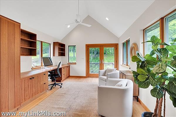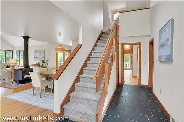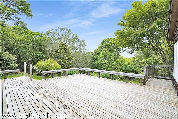 Seven Gates Farm: This warm and convivial home in one of the island’s most desirable communities is less than 1/10th of a mile to the private association beach. The house was designed to accentuate indoor-outdoor living; there is generous decking for morning or afternoon sun, and a screened porch which is the perfect place to enjoy shade and breeze after a day spent at one of the nearby beaches. There are views of the water from the second floor. The rolling 10.7-acre lot is spectacular with mature trees, stone walls, and open meadow punctuated by dramatic lichen-covered boulders. Seven Gates owns and maintains two miles of private beaches, two large docks for swimming and boating, two tennis courts, and many miles of walking trails through 1600 acres of unspoiled association land.
