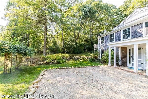 Abutting hundreds of acres of conservation land and walking trails leading to the second-highest point on Martha's Vineyard with views of the Elizabeth Islands, this classically-styled house with detached guest quarters offers 5 total bedrooms and 4 full baths plus an outdoor shower. The primary bedroom suite is a generous size and has its own small deck that overlooks the charming front yard. The property feels quintessentially Chilmark with ancient stone walls and mature plantings. The detached guest quarters features a spacious bedroom, full bath, kitchenette eating area, and a garage. Menemsha Hills Reservation is your backyard - 211 acres described by its Trustees as follows: "Menemsha Hills was shaped by thousands of years of glacial advance and retreat. Today an array of mini-environments comprise a rugged, pleasant landscape: low wetlands, woodland groves leading to a hilltop, wind-blasted coastal plains, a rocky ocean edge, and 308-foot Prospect Hill." Not to mention - Menemsha sunsets are a short distance away!