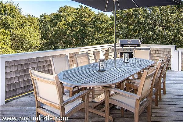 COASTAL RETREAT IN KATAMA. Located in the heart of Katama, with the iconic Katama Airfield and the sandy shores of South Beach nearby, this contemporary coastal retreat is ideal for enjoying all the best of Katama. The reverse-style contemporary features a sunny, open-designed floor plan with vaulted ceilings that seamlessly combine an inviting Living Room with gas fireplace, a Game Room with custom built-ins, a spacious Dining Room with seating for eight -- plus an attractive cook's Kitchen with stainless appliances, granite counters and counter seating. The living space opens onto two second-story decks that are ideal for entertaining or relaxation, which enjoy sounds of the ocean and gentle summer breezes. The property is being offered furnished, providing a turnkey opportunity and seamless move-in experience. This property not only offers an exceptional living experience but also includes a solid rental history and $60,000+ in current gross rentals for Summer 2025 -- plus available peak weeks for a buyer to rent OR use themselves. Make this coastal gem your own and enjoy the unique Katama lifestyle that it offers.
