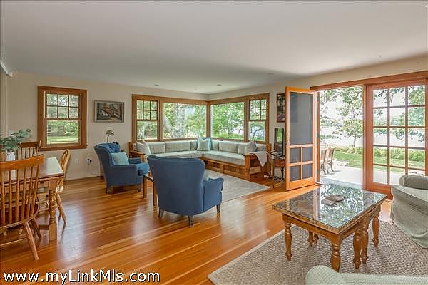 This distinguished Edgartown Great Pond compound presents an exceptional collection of features and amenities. Situated within a highly desirable, secluded enclave on Turkeyland Cove, the 4.8-acre property includes two residences, a bespoke private in-ground swimming pool, approximately 400 feet of waterfront, outstanding water views, and a private beach lot on the Atlantic Ocean. The principal dwelling offers four bedrooms, exquisite craftsmanship throughout, and a unique setting right along the water. The secondary residence was constructed in 2010 and spans 2,556 square feet, featuring two bedrooms, a three-car attached garage, and a full basement. The buildings are harmoniously integrated with meticulously designed plantings, landscape, and custom-built fencing and gates. The pool area provides a secluded oasis, with an L-shaped gunite swimming pool nicely complemented by two adjacent outbuildings. Expansive lawns gently slope towards the waterfront, and boat access to the Atlantic beach is readily available from the property shoreline. Held by the same owner for over three decades, this property represents an unparalleled opportunity.
