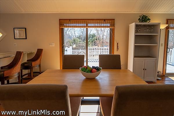 This coastal contemporary residence is located on a private 1.60-acre lot in WestTisbury, with convenient access to Long Point Wildlife Refuge. The home features four bedrooms and two full bathrooms. On the first floor, you'll find two bright bedrooms, a modernized bathroom, and sliders from the living area that lead to a new AZEK deck and enclosed fenced gardens, perfect for outdoor enjoyment. The open floor plan includes attractive beadboard ceilings that create a sense of space and light. Recent upgrades feature a remodeled kitchen with a tiled backsplash, granite countertops, and an LG induction stove along with matching stainless-steel appliances. The first-floor bathroom has been fully renovated with a tiled shower and glass door, tiled floor, new toilet, vanity/mirror, rainfall showerhead and all new hardware. Additional updates include a newer roof, Azek window trim, an outdoor shower enclosure, and gutters with leaf guards. The basement has a 9-foot ceiling with four windows, providing potential for further finishing with town approval. Other improvements include updated plumbing and electrical systems, a new well pressure tank, new Culligan Water Filtration and Conditioning system, and a Generac whole-house generator installed in 2022. Partially furnished and with additional updates available in the documents, this property is well cared for and ready for new owners. Potential to be a STRONG RENTAL PROPERTY. Title 5 Inspection Report in documents.