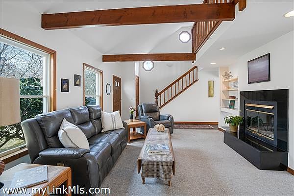 This charming Cape-style home, built in 1992, is tucked away in a quiet, subdivision on South Vine Lane. With three bedrooms and two bathrooms, it blends classic Island character with modern comforts. The inviting living room features vaulted ceilings and a double-sided fireplace, creating a bright and spacious atmosphere perfect for both relaxing and entertaining.