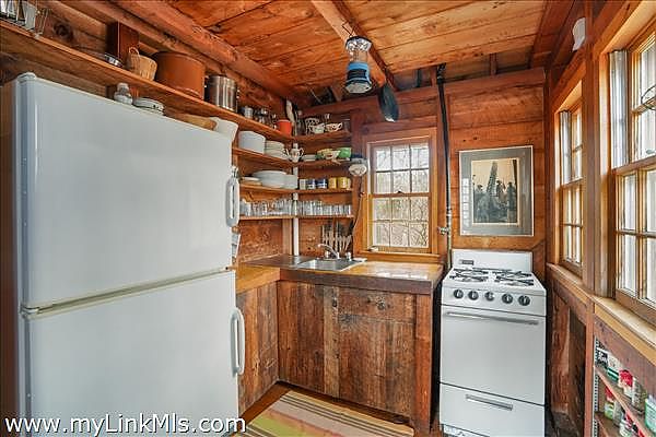 The year-round main house spans 2,153 square feet and has three bedrooms and two bathrooms. Its seamless blend of Island charm and modern convenience ensures you enjoy all the comforts of home while living sustainably year-round with an off-grid energy system. The property includes a classic two-bedroom summer camp with its own separate driveway and short path to the pond, giving guests their own slice of paradise.
