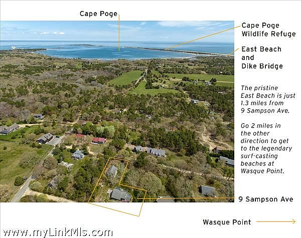 A home for all seasons and multiple purposes --- If you choose to have a comfortable, kick-your-shoes-off, not-fussy, beach home on the tranquil, non-commercial island of Chappaquiddick, then this is your destination. The fabulous, pristine, seemingly endless miles of shoreline at East Beach, just over Dike Bridge, is only 1.3 miles distant. The gorgeous beaches at Wasque Point, where you also find some of the finest surf casting on the east coast, are only 2.1 miles away and the 30.6 acre MV Land Bank Quammox preserve with its small boat landing on Katama Bay is only 9/10 mile from the property. Chappaquiddick is crisscrossed with walking trails, two of which are a short distance from the front door.