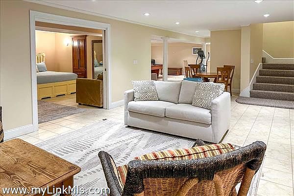 The second floor features an open lounge area overlooking the living room, complete with built-in bookshelves flanked by two spacious bedrooms each with en suite bath. The lower level is an entertainer's paradise, featuring a family/TV room, entertaining kitchen, wine cellar room, billiards/game room and room for an in-home gym area.