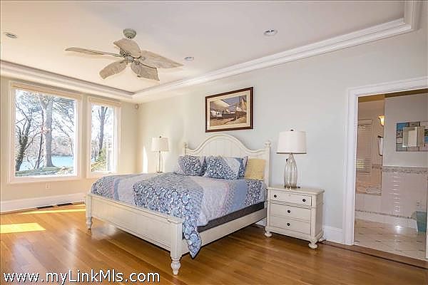 Step outside to a world of leisure and relaxation. The heated pool, with a built-in whirlpool spa and bluestone terrace, is ideal for warm summer days. An outdoor kitchen invites alfresco dining, while a hammock offers a peaceful afternoon retreat. The lagoon waterfront, with stairs to a sandy beach, provides calm waters for swimming, kayaking, and paddleboarding, and the ability to secure a mooring.
