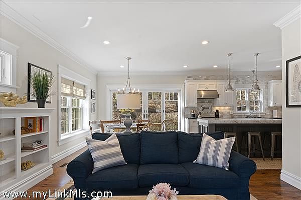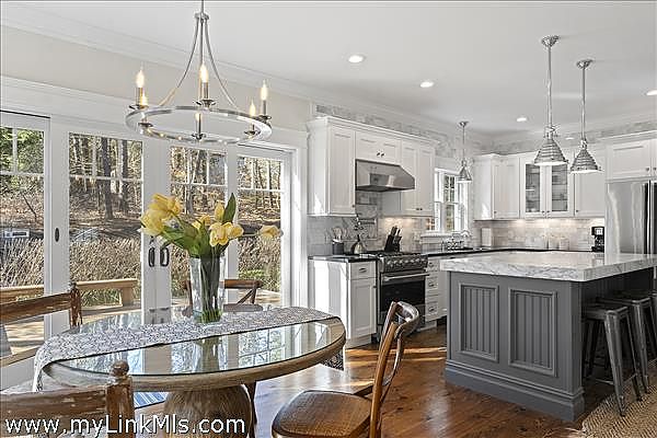 Experience the ultimate Vineyard getaway in this custom Colonial that perfectly balances sophistication with Island charm. This thoughtfully designed property features soaring 9-foot ceilings, authentic Heart Pine flooring, and a show-stopping gourmet kitchen complete with professional-grade Viking appliances, handcrafted soapstone countertops, and a statement Carrara marble island. The spacious floor plan offers four bedrooms and four full bathrooms, complemented by two powder rooms and a fully finished lower level for additional entertainment. Separate guest quarters above the garage provide visitors with their own private retreat, featuring a dedicated living room, convenient wet bar, and private deck. Outdoors, a mahogany deck overlooks beautifully landscaped gardens, with an outdoor shower perfect for post-beach rinses before alfresco dining under the stars. Conveniently located just a short distance from downtown Edgartown's acclaimed restaurants, boutiques, and harbor, this property offers a quintessential Vineyard experience and an established rental history.