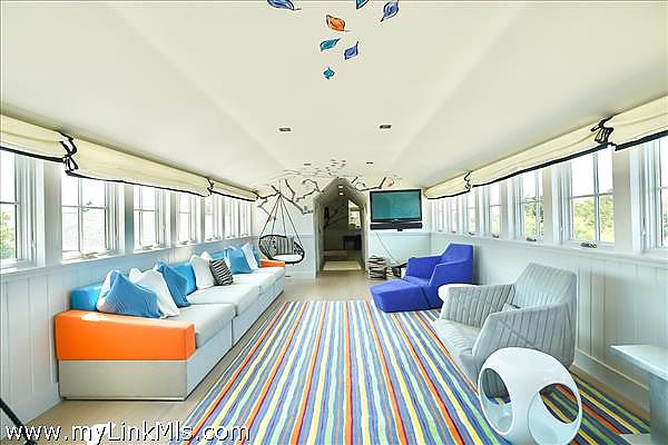 This dramatic contemporary styled house lies on 6.5-acres of beautiful pond front land in the exclusive Herring Creek Farm. The home features cathedral ceilings throughout and an open floor plan with large living room, dining room and kitchen, all with clear story light, fireplaces and 20 ft. breakaway Nana walls. The spiral staircase leads from the living room to a large roof deck with expansive views of the South Shore. There are 5 suites all with luxurious bathrooms, closets, and private garden terraces. Additionally, there is an attached carriage house with 3 additional bedrooms, a billiards room and exercise room. The grounds offer a large, stunning pool, a 12 person Jacuzzi, outdoor kitchen, and parking courtyard. There is a high level of finish throughout, a whole house Lutron control system and advanced audio/video. Herring Creek Farm offers direct access to private South Shore beach and over 150 acres of conserved land.