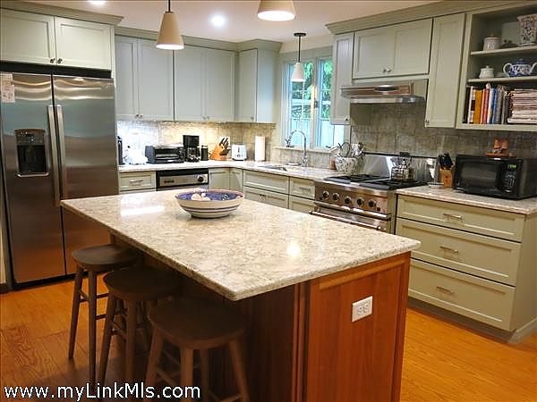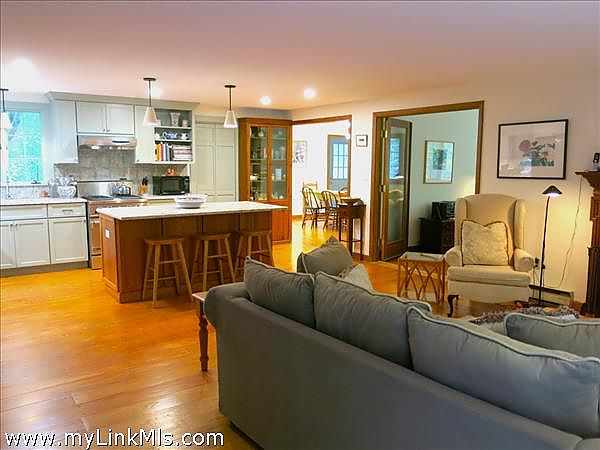 Large comfortable and charming expanded Cape in a lovely setting very close to Lambert's Cove Beach and James Pond Preserve with special walking access to Swimming on Ice House Pond in the Manaquayak Preserve as well as deeded walking access to swim and boat on Seth's Pond. The living room is open to the beautiful newly-renovated kitchen and has an often-used wood-burning fireplace. There is a separate family room with big windows that really bring in the views of the wooded setting. Off the kitchen is the large dining room with a door out to the expansive back deck. Also off the kitchen is the laundry room/pantry. The first floor also has 2, nicely proportioned bedrooms, an office and a full bath. Upstairs is a large primary bedroom as well as another generously-sized bedroom, both with banks of south-facing windows flooding these rooms with sunlight and both large enough for comfortable sitting areas for conversation, reading or just getting away from the hustle and bustle. These two bedrooms share a "Jack & Jill" bath. The charming and newly renovated Lambert's Cove Inn is just up the hill for dinners out when returning from a day at Lambert's Cove beach, watching the sunset at James Pond or swimming at one of the ponds.