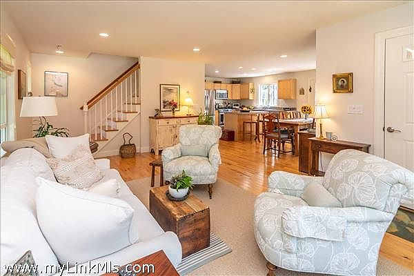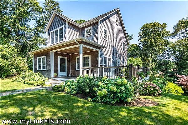 CLASSIC STYLE MEETS TIMELESS CHARM. Located at the end of a lightly traveled lane and surrounded by stunning gardens and stone retaining walls, this meticulously maintained home provides a modern and spacious environment for comfortable island living. Upon entry, the home welcomes you with an open and bright layout, featuring sleek finishes and an abundance of natural light. The gourmet kitchen is a chef's delight, featuring Kitchen Aid® stainless appliances and a center island with counter seating that seamlessly connects with the living and dining areas, creating an ideal space for entertaining or everyday living. A cozy Family Room/Den is also located on the main floor, with handsome custom built-ins and pocket doors for quiet and privacy. The second-floor primary bedroom is a private sanctuary, complete with a walk-in closet and an en-suite bathroom featuring contemporary fixtures and a spacious walk-in shower. The two additional bedrooms on the second floor offer versatility and comfort, accommodating various needs and lifestyles. With a 4-bedroom septic, the walk-out Lower Level offers an ideal are for adding a bedroom, home office, in-home gym and/or recreation area. Outside, the meticulously landscaped yard provides a serene escape for outdoor relaxation and gatherings, offering a private retreat for enjoying the beautiful surroundings. Conveniently located near nature trails that lead to the Lagoon and within a mile of Vineyard Haven with dining, shopping, and entertainment options, this home offers the perfect combination of modern living and convenience. Schedule a showing today and envision your future in this charming Vineyard Haven residence. *Note: The property is located in the Lagoon Pond watershed and will require an upgrade to an enhanced nitrogen septic upgrade. An approved septic plan is included in the purchase price.
