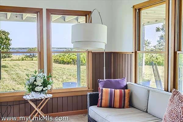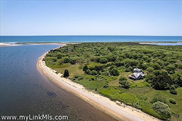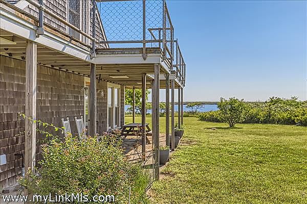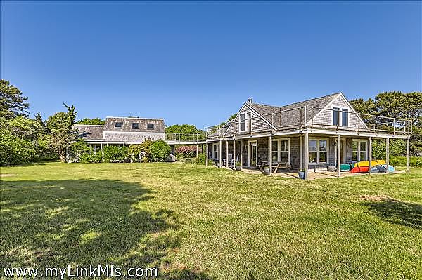 Nestled along the beautiful and tranquil shoreline of Tisbury Great Pond and surrounded by a stunning natural environment of water, sand and sky, this is an unparallelled beach house experience on the south shore of Chilmark. The five-bedroom home consists of a three-bedroom main house connected by walkways to a two-bedroom guest wing with studio space above, all with spectacular water views including from ground floor. The yard surrounding the house is a meadow like setting with an easy grassy path out to the sandy pond shoreline. Play on the pond with paddleboards, kayaks, small motor boats and sailboats, and quickly cross over to the ocean beach. Although little ones love to stay on the pond shoreline at the house to explore and swim in these safe calm waters. The existing buildings and six-bedroom septic await your vision. Abutting conservation land on two sides. Access to Chilmark beaches as well. This is a rare offering with the combination of water frontage on the pond, proximity to the ocean, conforming acreage and panoramic views. Create your own private sanctuary for your family in this wild and beautiful, natural setting.