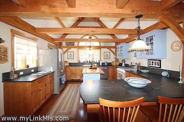 This beautifully maintained post and beam home situated at the end of a quiet lane in the Katama area has just become available. When you enter the home, you get a sense of the quality and care taken to preserve this truly special property. The entrance foyer opens into a comfortable living area with a handsome fireplace, stairway to the second floor and half bath with full laundry. The dining area has access to the enclosed screened-in porch, and the fully appointed kitchen boasts countertop seating and a centered butcher block Island. The side entrance from the outdoor bluestone patio opens to the first-floor hallway and the den/office. The other side of the first floor is a hallway to the primary full bathroom and bedroom with cathedral ceiling. The interior of the house is graced with red oak, post & beam design and complimented with natural pine interior doors and wood trim throughout. The handsome Brazilian Teak flooring adds to the charm of this first floor. The second floor is accessed by an attractive pine staircase that leads to an open sitting area. There are two bedrooms with a shared bathroom. New Andersen windows installed in May of 2025. The perfect vacation home or year-round residence is equidistance to downtown Edgartown or the popular Katama South Beach.