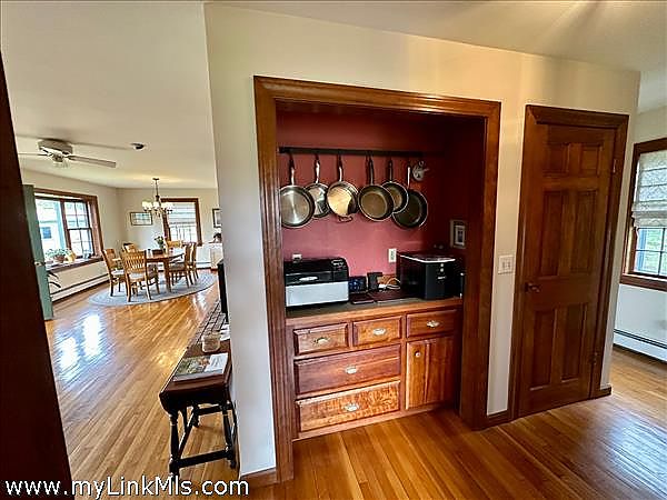 This Cape Style home privately sited on 1.89 acres at the end of a cul-de-sac abutting conservation land with many walking trails. Nice features include spacious living spaces that include a well equipped kitchen with custom cherry cabinets, dining room, living room with fireplace, wood stove and french doors that lead you out to a private patio and backyard. Second floor offers two guest bedrooms, primary bedroom and full bath. There are wood floors throughout, a butler's pantry off the kitchen, full basement with a dormered bulkhead. The owner, a cabinetmaker and finish carpenter currently has it set up as a workshop. The nicely landscaped yard with mature plantings and gardens offers a peaceful setting. There is also a garden shed for garden and outdoor equipment.