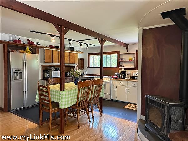 Located on 4.7 acres filled with rolling meadows and stone walls, this property boasts a truly remarkable barn that was transported from Maine, and rebuilt on the Island. The grandfathered-in barn spans approximately 61' by 45' with soaring ceilings. A staircase leads to a second-level landing area and a third level that extends across the entire structure. This additional space effectively doubles the square footage, totaling approximately 6,000 square feet. The barn offers endless possibilities, from completely renovating it into a massive 6-bedroom home to hosting large events or accommodating extensive storage needs. It must be seen to be fully appreciated.