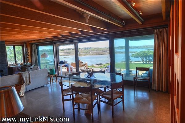 Magical waterfront Quitsa pond cottage with private dock. This home has the most spectacular views including sunsets and an intimate relationship with the charming and timeless waterfront at Quitsa Pond. Designed with the setting in mind this sublime piece of architecture has wonderful spaces, fantastic detail and so much packed into a smaller home. Landscape design by Edwina von Gal accentuates the simplistic beauty of this propery. A unique and inspirational built-in art installation by Andy Goldsworthy adorns the northeastern wall of the living room. A fireplace created with slate roof tiles unlike any other is built into the southwest wall. Custom Will Parry windows and doors throughout with giant floor to ceiling glass doors that slide wide to join the inside and outside of the home bringing the natural beauty of the area into the house. Step outside and onto your private dock with power and water, or walk down your boat ramp into the warm waters of the pond for a swim, kayak or paddleboard adventure. A custom staircase influenced by Frank LLoyd Wright has built-in book cases and metal work by artisan Whit Hanschka which brings you to the upper floor where there are 3 bedrooms and 2 baths. 2 of the bedrooms open out onto a small deck overlooking the pond and all have views of the water. This home is cozy with radiant floor heat under the tile floor