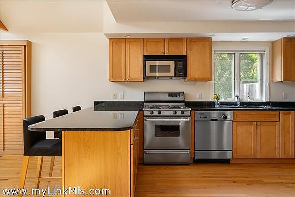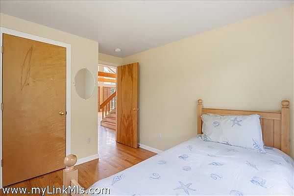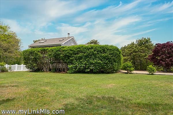 Vacation Getaway in Edgartown Estates - This sunny and welcoming contemporary could be yours this summer! With an open layout, vaulted ceilings, and lots of windows and glass doors, the home feels bright and airy. Step outside to a spacious wrap-around deck—great for relaxing or entertaining. Inside, the living, dining, and kitchen areas flow nicely and are just the right size for gathering. The first floor has three guest bedrooms, while upstairs you’ll find a loft, the primary bedroom suite, and a private balcony. Other features include hardwood floors, air conditioning, a full basement, and an outdoor shower—perfect after a day at the beach. The half-acre lot offers a nice lawn with mature trees and plantings that give privacy from the road and neighbors. The location is excellent, just off the bike path to South Beach or into Edgartown Village. Come take a look!