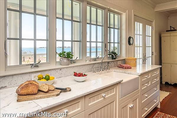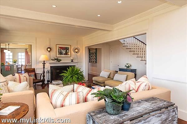 As you step inside, you'll be greeted by the warmth of four wood-burning fireplaces, handsome hardwood and painted floors, custom millwork and built-ins, a spacious screened porch and more! The rooftop widow's walk provides breathtaking 360-degree views, while the sparkling blue waters of Katama Bay can be seen and enjoyed from most every room in the house