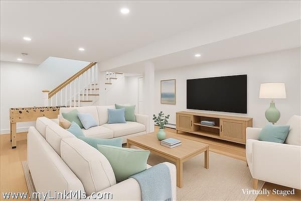 Located in the sought-after Dodgers Hole neighborhood, this beautifully renovated home blends modern style with coastal ease. Sunlight fills the main living area, where cathedral ceilings and hardwood floors create a bright and welcoming space. The kitchen has been completely redone with fresh finishes and thoughtful design, and the brand-new baths add to the turnkey appeal. The finished lower level offers excellent bonus space—ideal for a media room, home gym, or overflow entertaining area. Set on a well-maintained lot just minutes from downtown Edgartown, South Beach, and island bike paths, 61 Dodgers Hole Road is a move-in-ready opportunity for year-round living, vacation enjoyment, or investment. Buyers and agents to verify all information herein.