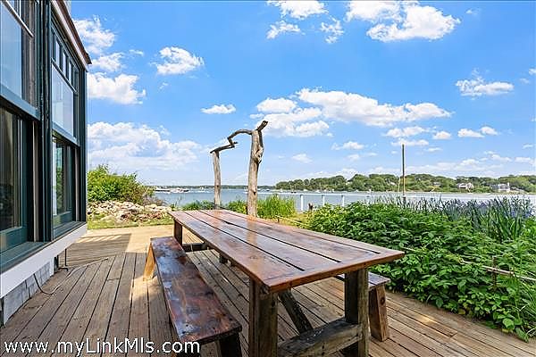 Unique, waterfront property with amazing, 180 degree views of the lagoon from one side of the property, and the Vineyard Haven Harbor on the north side of the property. Zoned both residential and commercial, rarely does such a unique property become available. Elevated above Beach Road and the lagoon, there are 2 structures on the property. The first, sited on the lagoon with private access, is a year-round home with breathtaking, expansive sunrise views up and across the lagoon. This building has 4 bedrooms, two on the first floor and two on the second floor, 2 baths, one on each level, and 2 living areas. The upper level has a spacious deck overlooking the gardens and expansive views of the lagoon. The waterside patio has beautiful perennial gardens. There are many creative details throughout. Use the property as it is or take advantage of the work the sellers have completed to turn it into 3 condos: 2 residential condos and one commercial condo. The commercial building is currently used as an artist’s studio. Work needs to be done to meet building code regulations for a commercial operation. Mooring is transferable. Property is connected to the town sewer and town water.
