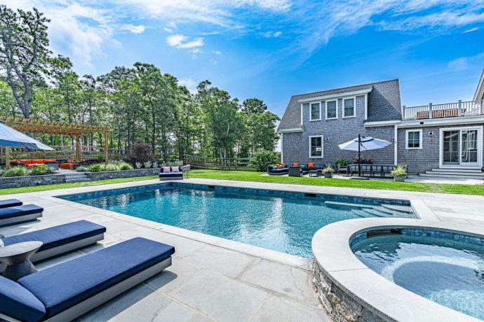 Just 1 mile from Oak Bluffs center this stunning 5 bedroom, 4.5 bath features a gunite pool with a bluestone patio surround, sure to be the focal point...Read more