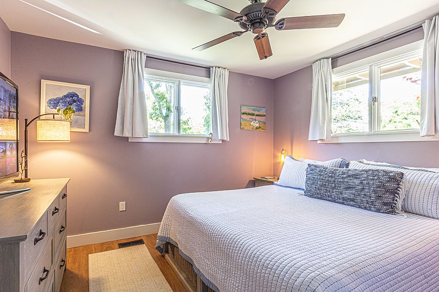 Bedroom 2: 1st Level, King, TV, ceiling fan, A/C, shares hall bath with bedroom 3