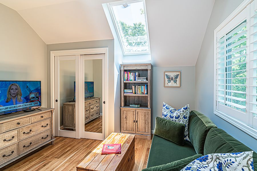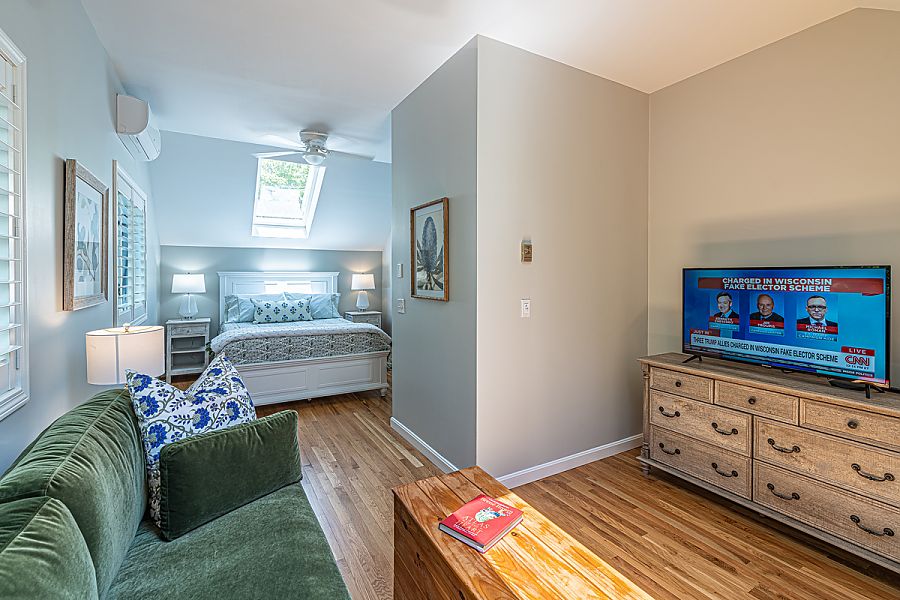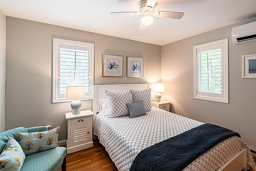Bedroom 2: 1st Level, Queen, ceiling fan, A/C, shares hall bath