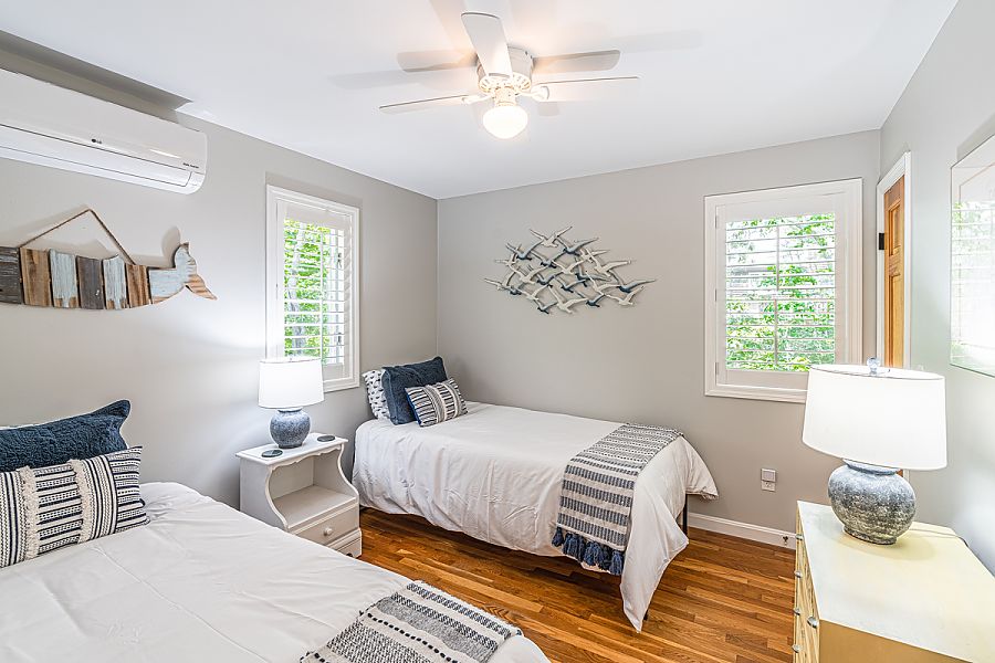 Bedroom 3: 1st Level, 2 Singles, ceiling fan, A/C, shares hall bath