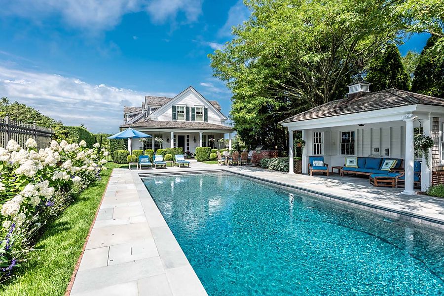 Edgartown Village Luxury Home featuring a 6 bedroom Main & Guest House, Heated Pool, Cabana & Hot Tub, Water views across Eel Pond to Nantucket Sound and Pristinely Landscaped Grounds. Walk to the Village Center!