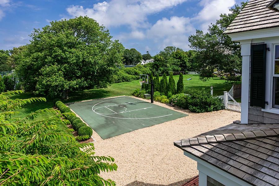 The main house opens at one end directly to the pool and patio areas.  The opposite end of the pool hosts the 2 bedroom guest house.  The entire property has lushly landscaped grounds, an expansive lawn area and even a half basketball court discreetly tucked to one side of the yard. Walking trails lead directly from the property to conservation land