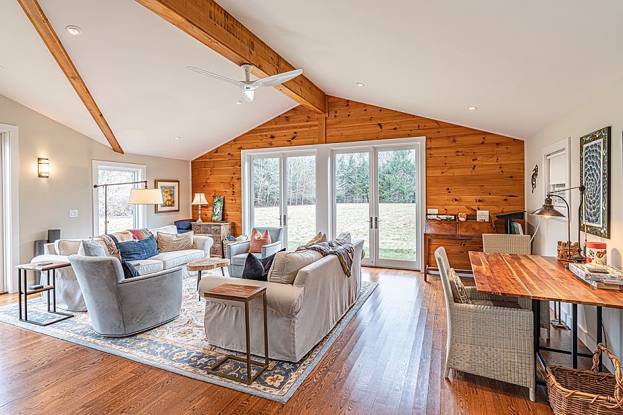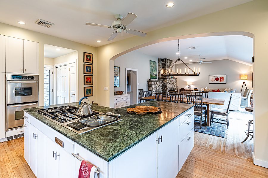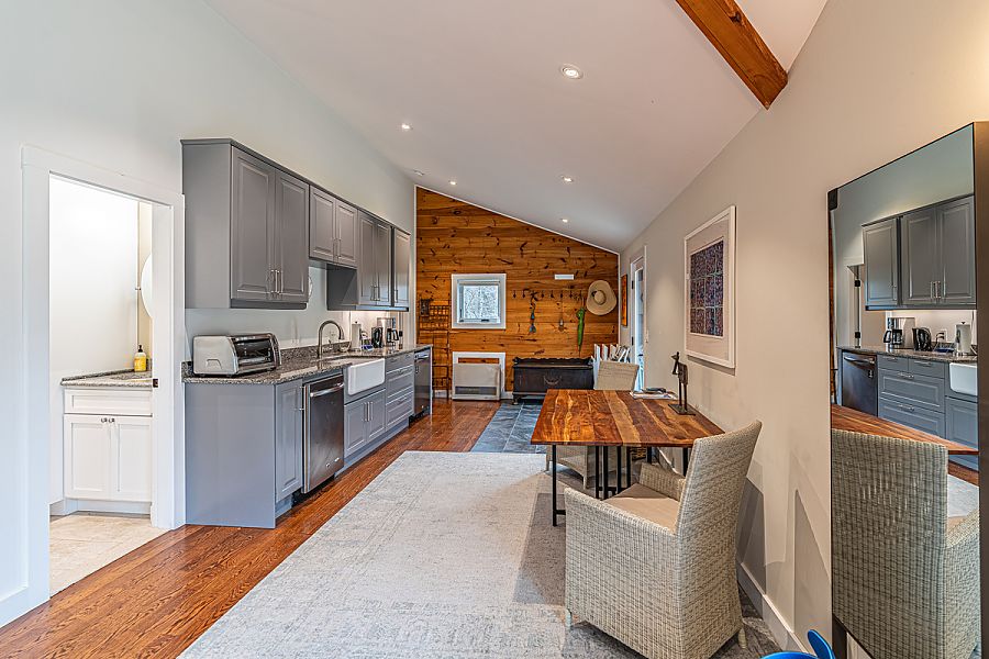 Bedroom 3: 1st Level, King, AC central, ceiling fan, shares hall bath with bedroom 2Guest House, 50 yards from Main House, Bedroom 4: 1st Level, King, window AC bath (shower only), Mini kitchen and dining table, large open living area
