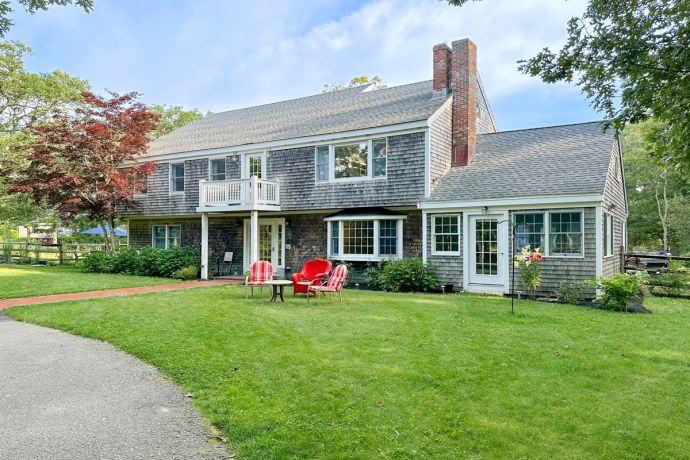 Classic Royal Barry Wills-designed cedar-shingled Vineyard home, beautifully sited on five private landscaped acres in the exclusive enclave of homes known as Makonikey. Lovely distant water views of Vineyard Sound and...Read more